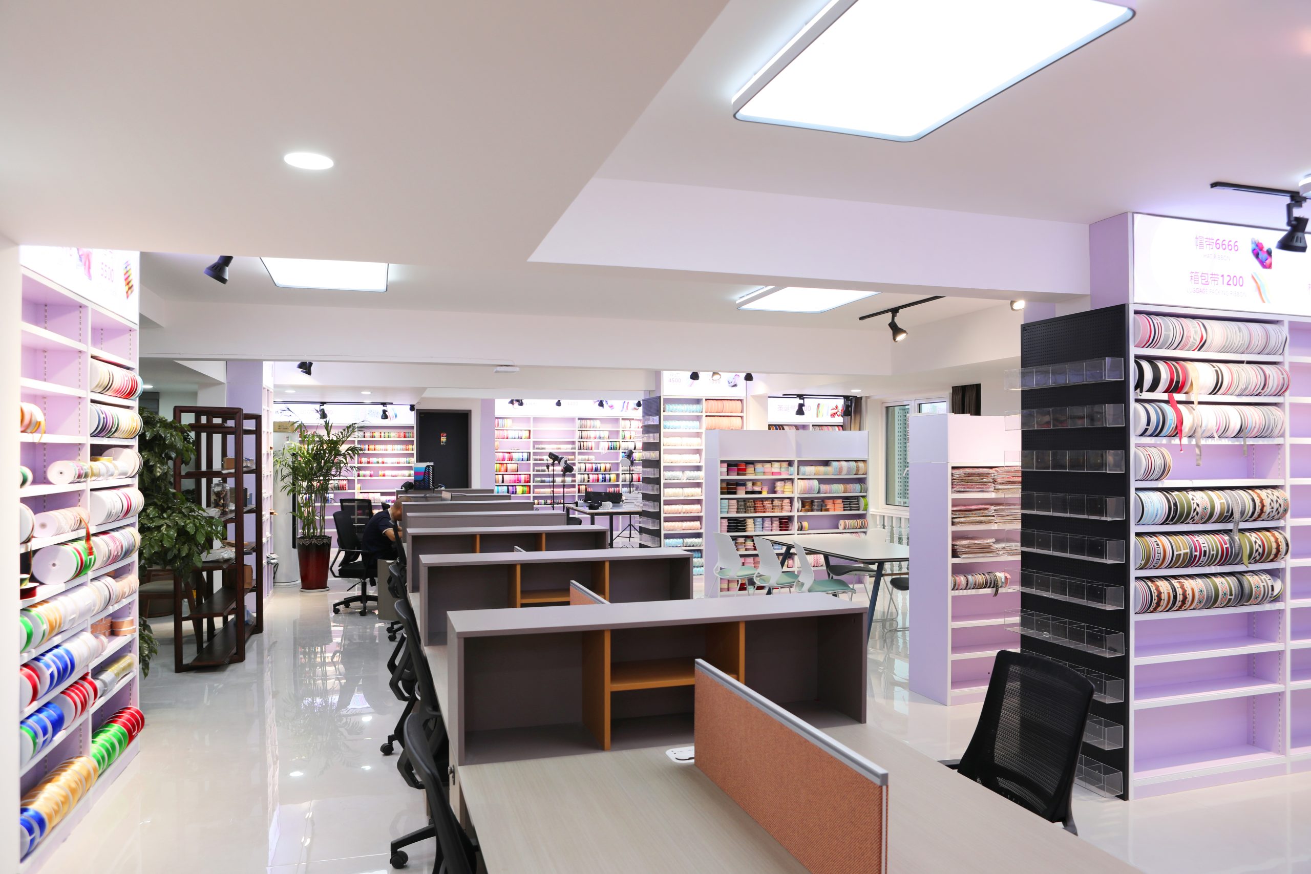 The company currently employs over 300 staff and operates a self-owned factory spanning more than 20,000 square meters, equipped with 12 advanced dyeing production lines and over 300 ribbon-weaving machines. Its product range includes satin ribbons, polyester ribbons, ribbed bands, poly-cotton tapes, organza ribbons, velvet ribbons, checked ribbons, cap bands, and various Korean-style specialty ribbons, with dozens of ready-made tape varieties kept in stock year-round.